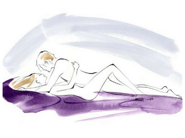 - Hai người nằm nghiêng cùng hướng, người nam nằm phía sau và ôm lấy người nữ.